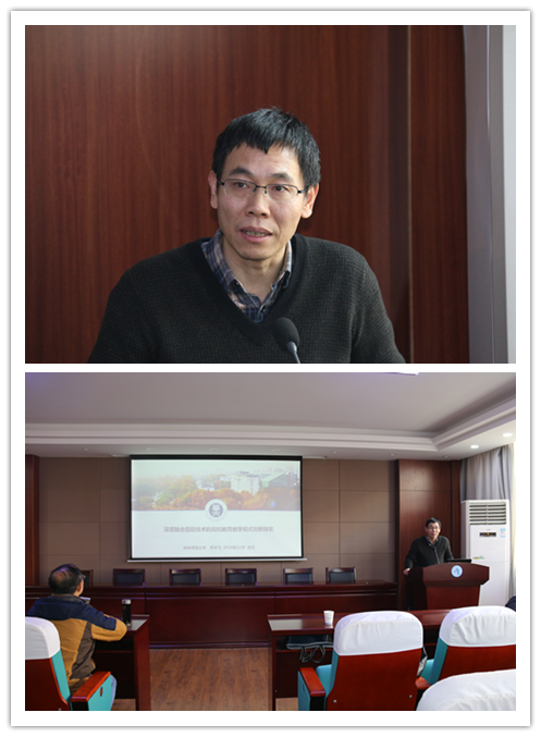 12月12日下午,华中师范大学李鸿飞教授应邀来公司作了题为《深度融合信息技术的高校公司产品模式创新实践》的教学研究报告。作为2018年教育部高等教育国家级教学成果特等奖得主,他介绍了以员工为中心的连接教育,构建信息时代的教育支撑体系;实现“以教为主”到“以学为主”,“以专业教育为主”到“以通识教育和专业教育为主”,“以课堂为主”到“课内外结合”,“以结果评价为主”到“结果和过程评价结合”的四个转变;构建“云+端”一体化教学模式;搭建“物理·资源·社交”三空间深度融合的智能型教学环境。这一报告让人耳目一新,为公司人才培养的信息化建设提供了宝贵经验和动力。