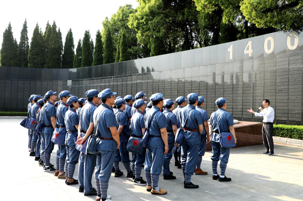 穿红军服,重走红军路,感受革命艰辛;听革命故事,回顾学习内容,交流学习心得,感悟红色文化。行军路上,在各位党委委员的带领下,大家唱起了红歌。嘹亮的歌声鼓舞了士气,同志们像极了重镇旗鼓、奔赴战斗的革命战士。