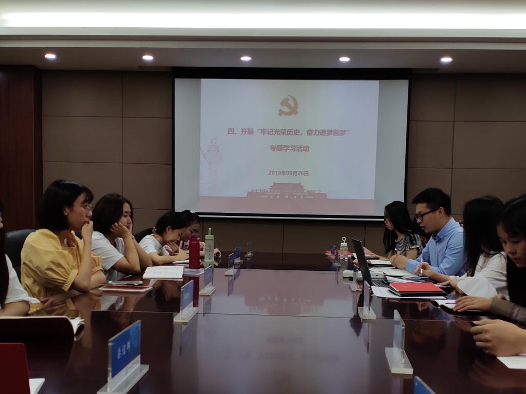 活动开始,全体党员起立,齐唱中华人民共和国国歌,并由组织委员带领大家重温入党誓词。新生党员依次作自我介绍,表达了对组织生活的期待和向往,支部书记薛励玥同志代表党支部向他们表示欢迎。然后,支部书记薛励玥根据公司和公司党委的有关要求,结合支部具体情况开展“不忘初心,牢记使命”主题教育的动员部署,围绕“我和我的祖国”主题内容,由杨瑞、王锐等新生党员发表了自己有关“牢记光荣使命、奋力追梦圆梦”专题的感想,结合自身的实践经历和感受,深切地体会到祖国的飞速发展,人民生活日新月异的变化。接下来,全体党员集中观看了反映祖国七十年成就的系列短片——《共和国发展成就巡礼-湖北篇》,进一步了解了70年来中国共产党带领全国各族人民进行社会主义革命、建设、改革取得的辉煌成就,并邀请部分党员同志发表自己的看法。