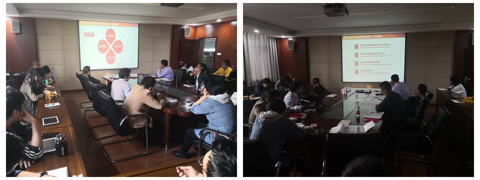 会后两个支部进行了座谈。各位与会党员针对公司老员工科技活动、保研、教学内容、教学形式、实习等各方面提出了一些建议和意见,老师对部分问题也进行了解答。