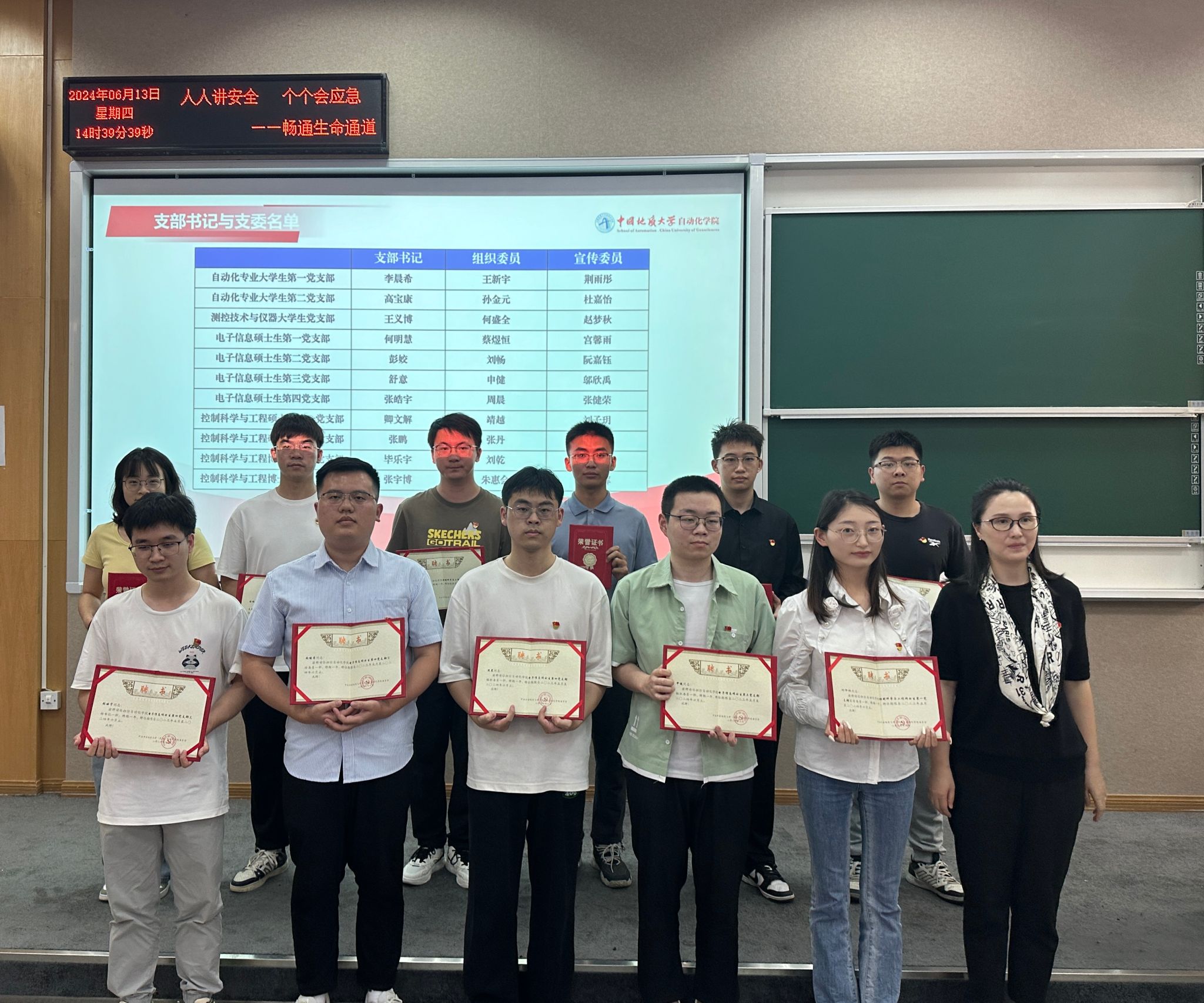 党委书记朱荆萨向获评先进基层党组织、研究生优秀党员颁发荣誉证书。