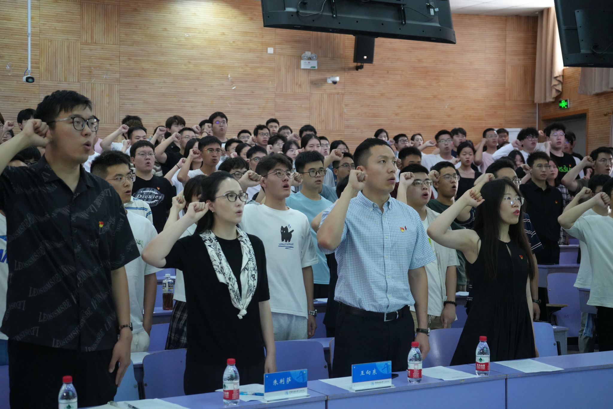 随后,毕业生党员代表闫泽同与会毕业生党员作廉洁承诺。她表示,在新的征途上,希望大家能够坚定理想信念,秉持家国情怀。坚持立德修身,筑牢思想防线。坚守纪律规矩,勇于担当作为。全体毕业生起立,共同承诺:要涵养廉洁自律的道德修为,心有所畏、言有所戒、行有所止,不断锤炼意志力、坚忍力、自制力,做一个一心为公、一身正气、一尘不染的人。