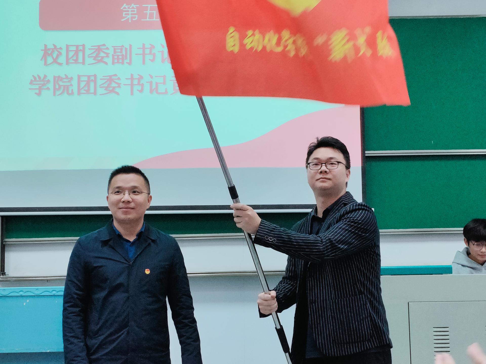 校团委副书记吴文兵教授代表上级团组织向公司团委书记黄兰华授旗。学员代表带领团校全体学员一起重温入团誓词,行宣誓礼,铿锵有力的誓言展现出新时代、新工科青年“强国一代有我在”的决心和信念。宣誓完毕后,全体齐唱中国共青团团歌《光荣啊,中国共青团》,将仪式氛围推向了高潮。