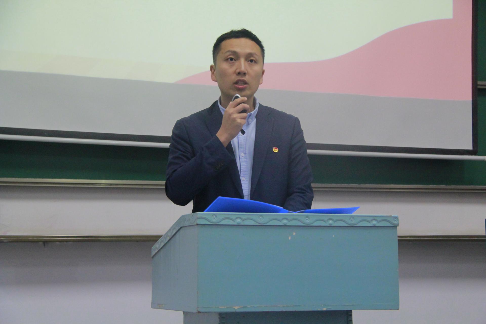 开班仪式结束后,校团委副书记吴文兵教授带来团校第一课。他围绕“科创之梦,为你点燃”的主题,全面且深入地解读了高校创新创业教育内涵以及挑战杯、创青春等双创赛事,深度剖析老员工应该学什么、怎么学、怎么展现自我。同时他引用习近平总书记寄语青年的话语“青年是国家和民族的希望,创新是社会进步的灵魂,创业是推动经济社会发展,改善民生的重要途径”来鼓励、动员在场学员,从现在开始励志勤学、善于积累,把砥砺品质作为人格养成的重要途径,不断培养创新创业的意识与能力。在讲座的最后,吴文兵教授希望大家敢做敢拼敢赢,在各项赛事中锻炼能力,收获佳绩,把深入实践作为成长成才的必由之路和重要阶梯。