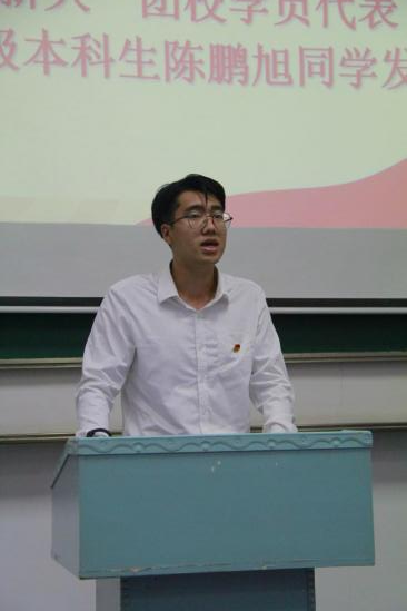 “薪火”团校学员代表2022级本科生陈鹏旭同学发言。他表示,学习是立德之本、增智之源;作为刚刚进入大学的员工干部,要珍惜机会、认真学习,带着为同学服务的初心和使命投入到工作与成长中,以团校培训为起点,在团结奋进中放飞青春梦想。