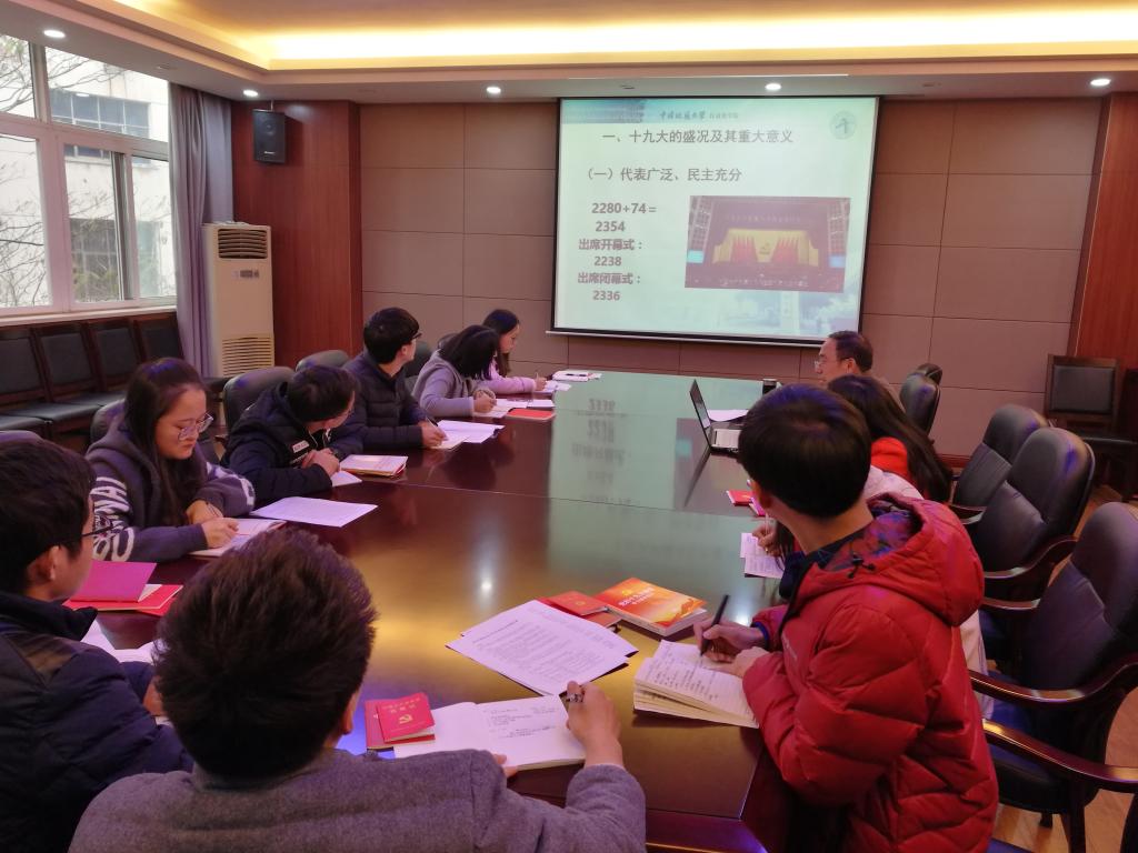 中国共产党第十九次全国代表大会于2017年10月18日至24日在北京隆重召开,这是包括广大青年员工在内的全党全国各族人民共同关注的一件大事,为深入学习贯彻党的十九大精神,公司深入开展了系列学习实践活动。2017年11月,公司党委书记董浩斌、副经理曹卫华、副经理金星、副经理陈鑫、党委副书记何建新、团委书记谭文伦及办公室组织人事秘书孔娟参加员工党支部支部会议,带领员工党员学习党的十九大精神。