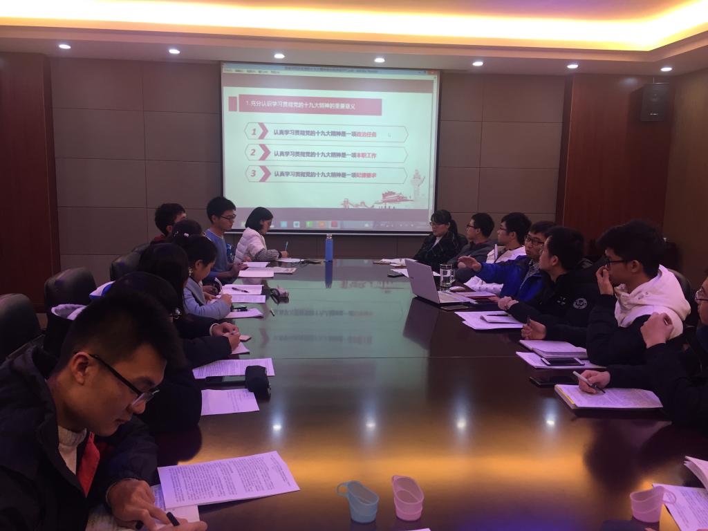 董浩斌书记带领仪器科学与技术专业硕士研究生党支部学习十九大。董书记开篇点题介绍了十九大的盛况,并从政治、理论和实践等方面阐述了十九大的重大意义。接着,着重介绍了十九大的总体框架及其主要精神,并详细阐述了中国特色社会主义新时代、新使命、新思想、新目标、新部署及新要求。