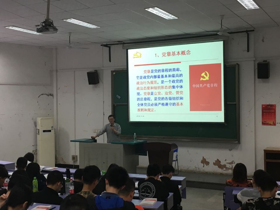 (通讯员 陈伟)2018年4月26日下午4点,365英国上市分党校入党积极分子培训班党课第九讲在教三楼207教室举行,本次党课主题是“学习实践党章、加强党性修养”,主讲老师是刘亚东老师。