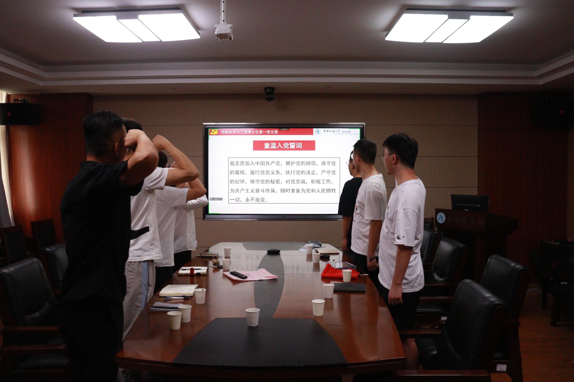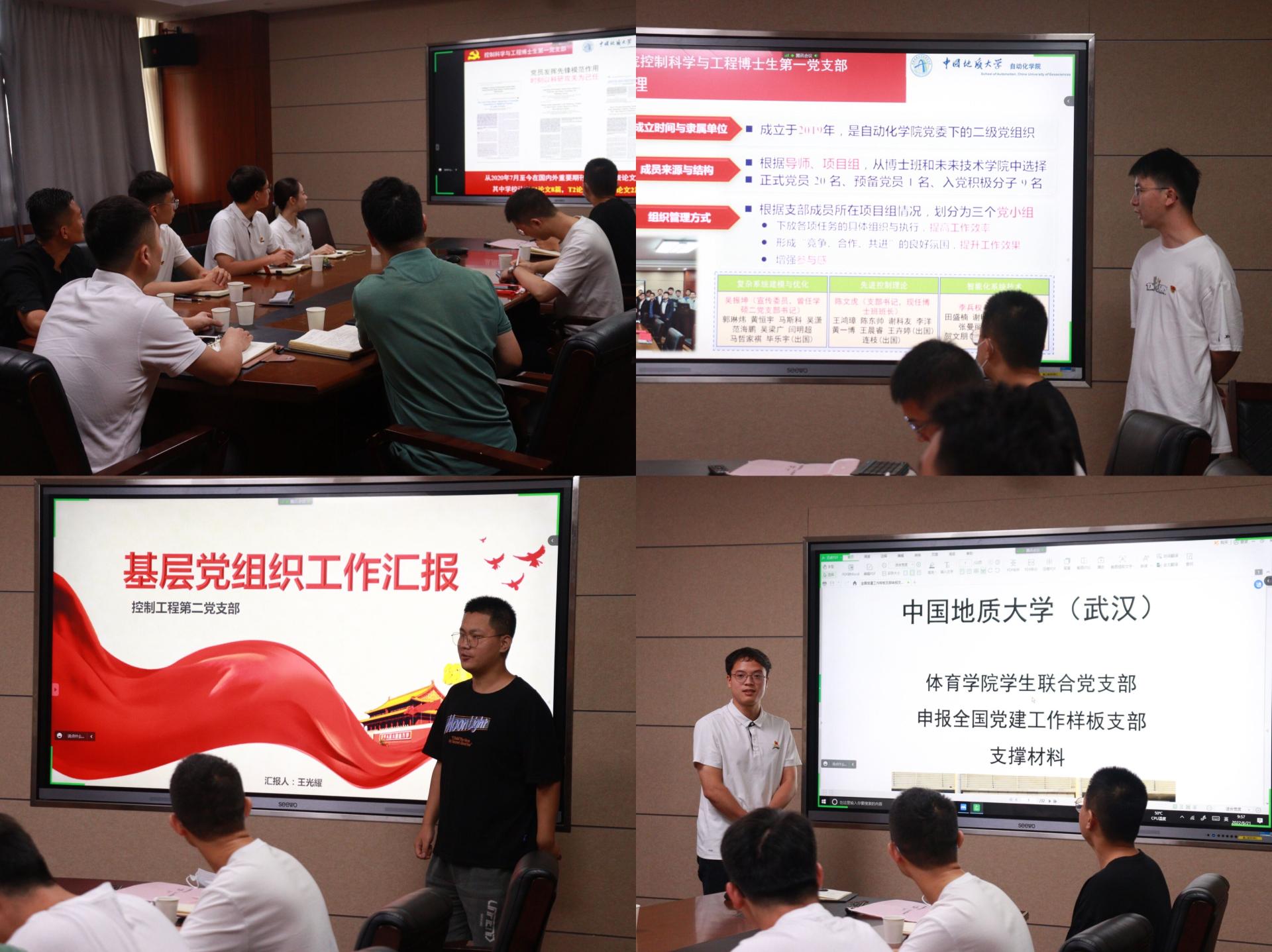 在齐唱国歌、重温入党誓词之后,员工党支部书记依次介绍了各自支部建设特色与成绩。陈文虎同志借助支自制党建视频,重点介绍了博一支部开展“云实践”、搭建“红星闪闪伴我行”分享平台等支部品牌活动;王光耀同志从思想政治学习和组织建设两方面介绍了专硕二支部的发展情况;蔡斯同志紧扣“攀登精神”主线,从组织建设、特色活动、党支部战斗堡垒作用、党员先锋模范作用方面详细介绍了在申报全国样板党支部过程中积累的先进经验。