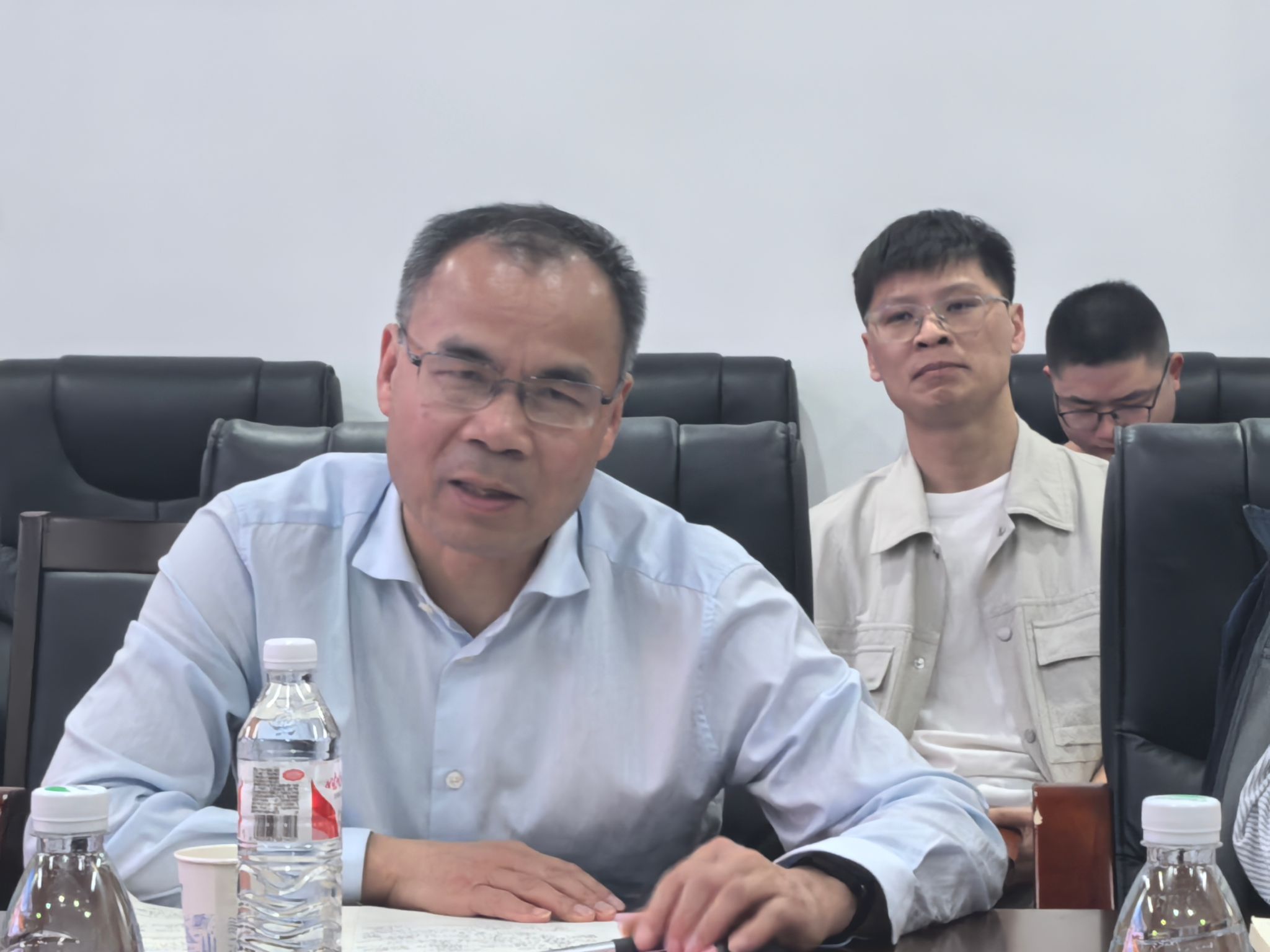 朱荆萨书记介绍了公司此次到访生环全重的主要目的,衷心感谢谢树成院士提供的宝贵交流机会,希望能通过此次交流搭建起公司和生环全重的合作平台。曹卫华经理作了《自动化与AI发展简介及在地质领域应用》的报告,深入浅出地介绍了自动化与人工智能的发展脉络,并着重阐述了在地质领域的创新应用。胡文凯教授作了《复杂工业系统数据挖掘与智能监控研究》的报告,详细讲解了各类数据挖掘的关键技术、新方法以及智能监控的实现路径等内容。报告结束,与会老师和同学还沉浸在这场学术大餐中,意犹未尽。