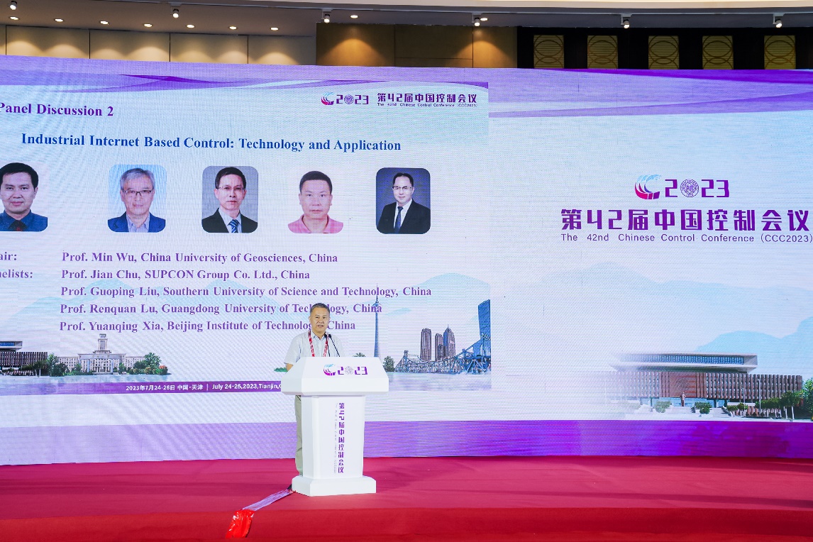 公司吴敏教授为CCC2023组织了题为“基于工业互联网的控制:技术与应用”的专题研讨会,主讲嘉宾有中控科技集团褚健教授、南方科技大学刘国平教授、广东工业大学鲁仁全教授和北京理工大学夏元清教授。与会嘉宾讨论了无人系统、工业互联网和控制领域现在和未来的相关问题,并对这些领域的发展进行展望,现场气氛热烈,高潮迭起。