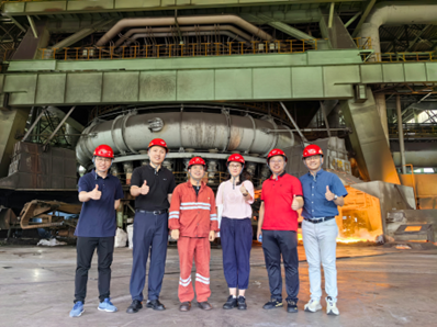 调研中,朱荆萨一行首先来到湖南涟钢一线炼铁现场——8号高炉厂参观调研,在滚滚热浪中映入眼帘的是出铁口,炉底铁水在出铁口间断地放出后装入铁水罐,送往炼钢厂。在生产现场,公司领导进一步详细了解钢铁行业的新技术、新工艺、新设备,认真听取企业的发展历程、主要业务、技术现状等情况,为继续深入开展校企合作、产教融合奠定了良好基础。