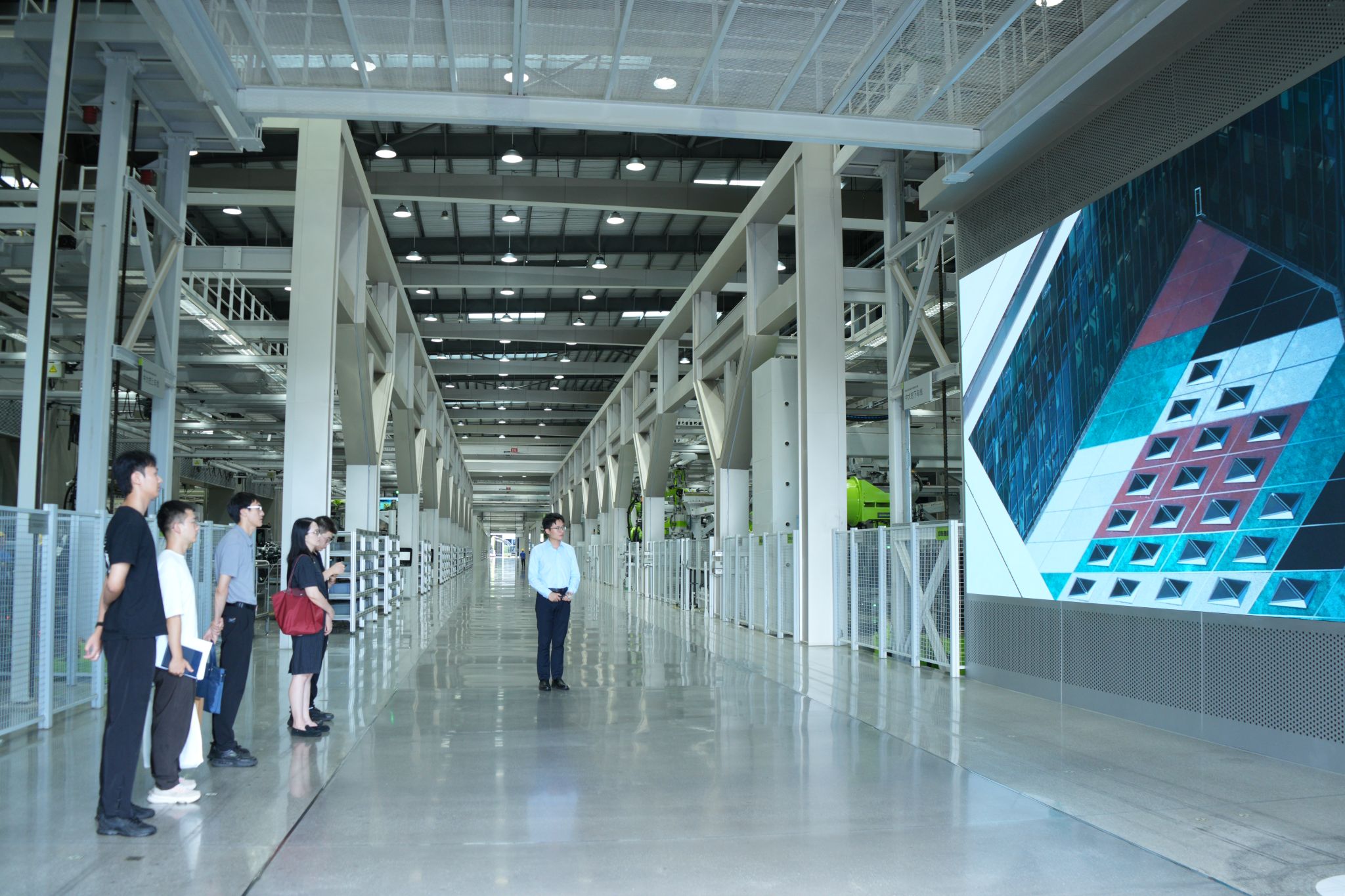 在中联重科股份有限公司,朱荆萨一行参观设备生产车间,观看工程机械表演,与公司人力资源部滕启超、杨茜玉、员工代表等交流座谈。滕启超介绍了公司在工程机械、矿山机械、农业机械等方面的产业情况和技术优势,期待公司能为公司输送更多人才。双方就进一步深化校企合作,推动人才培养、实习实践等方面进行深入交流并达成共识。