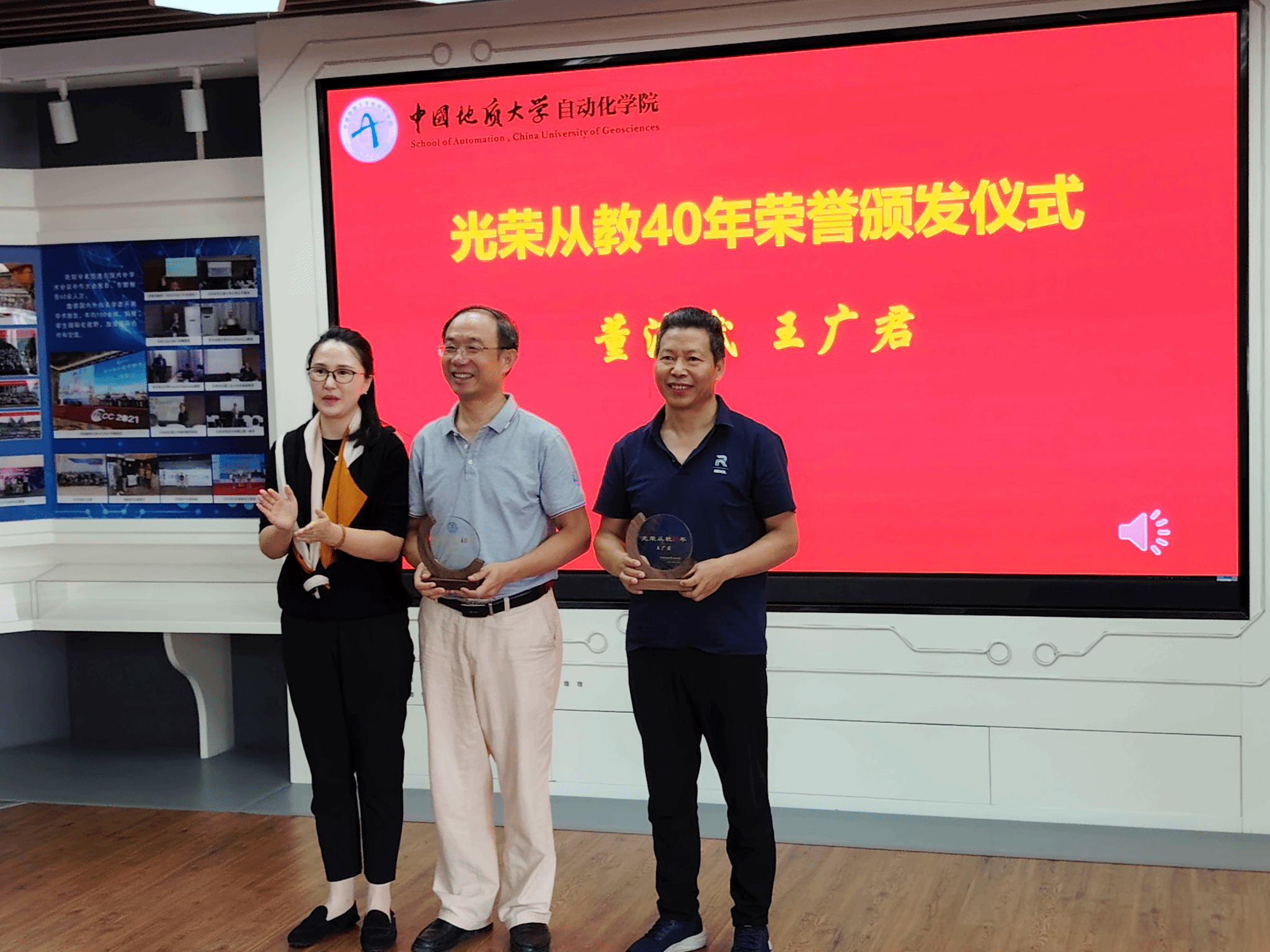 座谈会首先向六位今年适逢从教40周年及20周年的教师颁发了纪念牌,以表彰他们数十年如一日的辛勤奉献。在随后的分享环节中,六位教师依次发言,畅谈育人历程与教育感悟。董浩斌教授回顾了自己四十年来潜心教书育人的职业生涯——从辅导员到系主任,从经理到党委书记,始终扎根教学科研一线,积极推动学科与公司建设。朱荆萨书记分享了自己在校团委工作的难忘经历。她指出,地大是认可实干精神的地方,大学是塑造高尚品格的地方。作为一名光荣的人民教师,应当呕心沥血地为立德树人奉献自己的力量。