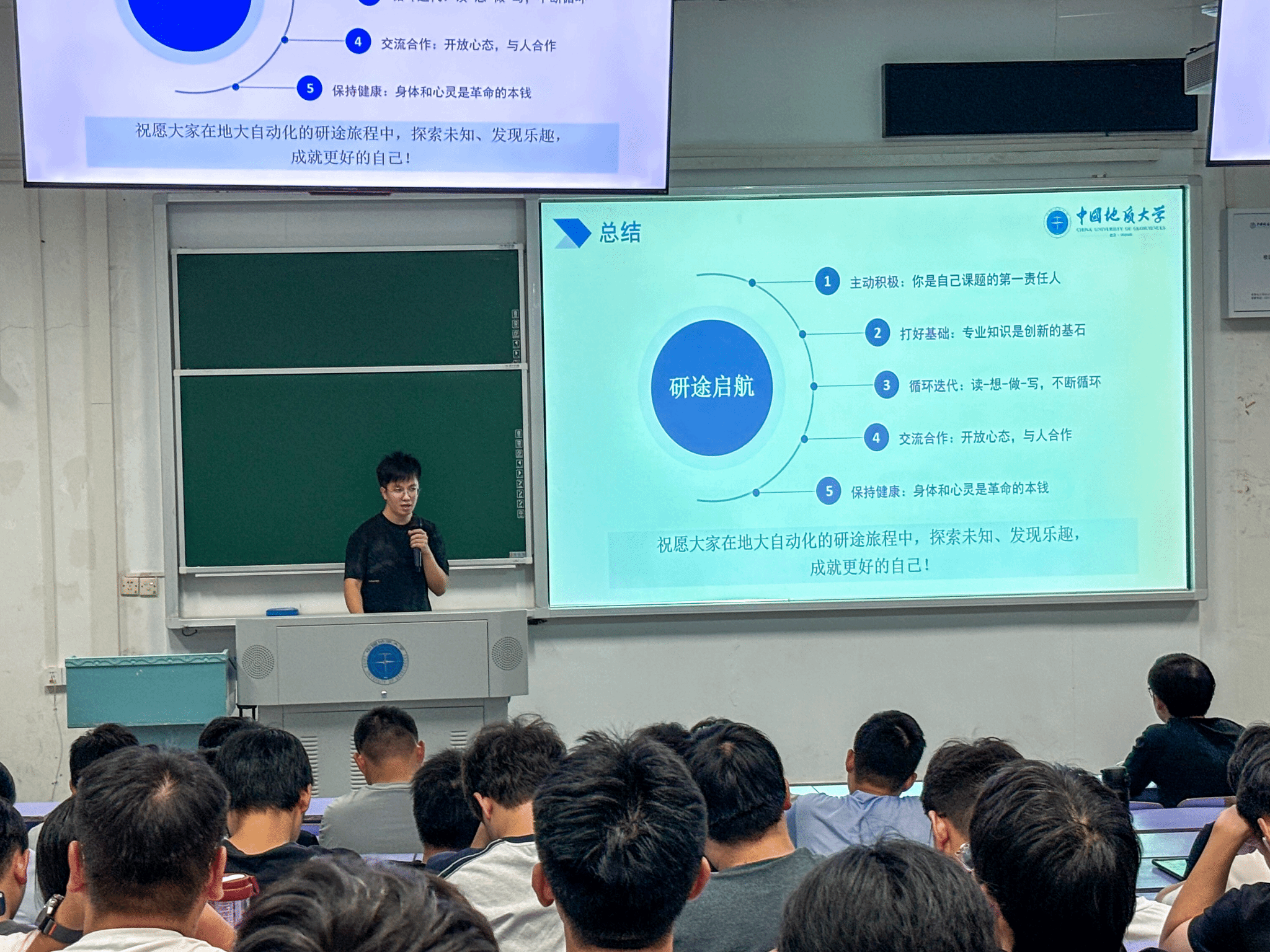 活动伊始,刘振焘教授围绕“教育强国背景下新时代研究生的自我塑造”作专题分享。他从公司历史沿革切入,勉励大家充分依托公司的团队队伍、科研平台等雄厚资源,不断提升科研能力;随后,他聚焦创新思维能力培养,鼓励大家坚持问题导向,勇于挑战前沿难题。最后,他寄语新生,要矢志科技报国,将个人理想融入国家发展,勇攀高峰。