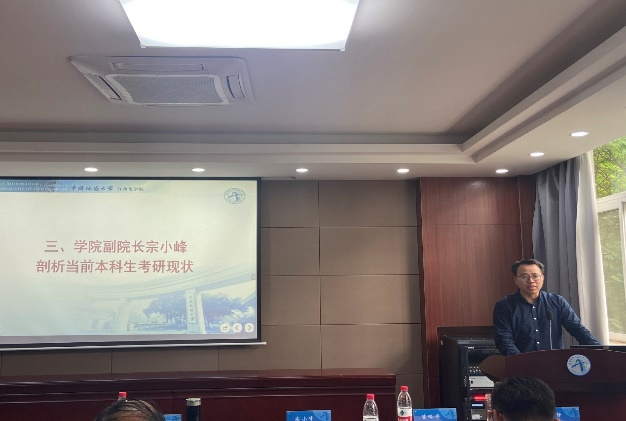 随后,公司副经理陈略峰介绍了公司近年研究生招生政策,通过历年来的详实数据分析了近三年公司毕业生的考研率、升学率和考研分数,指出当前考研的激烈竞争形势,并分享了自身读研深造经历和感悟,建议同学们要充分了解研究生学习生涯状况并做好心理选择、专业知识、实习实践等方面的准备,无论将来是择业就业还是升学深造都要夯实基础,谋划未来。