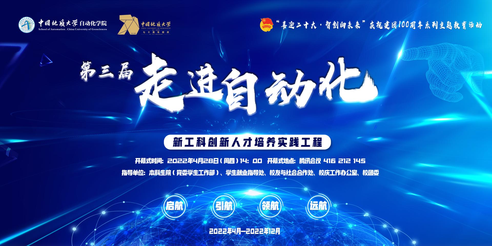公司党委书记董浩斌教授最后宣布第三届“走进自动化”新工科创新人才培养实践工程开幕,并寄语同学们一定要牢记青春向党、不负人民的嘱托,用聪明才智积极创新,以优秀的成绩庆祝中国地质大学建校七十周年,迎接党的二十大胜利召开。