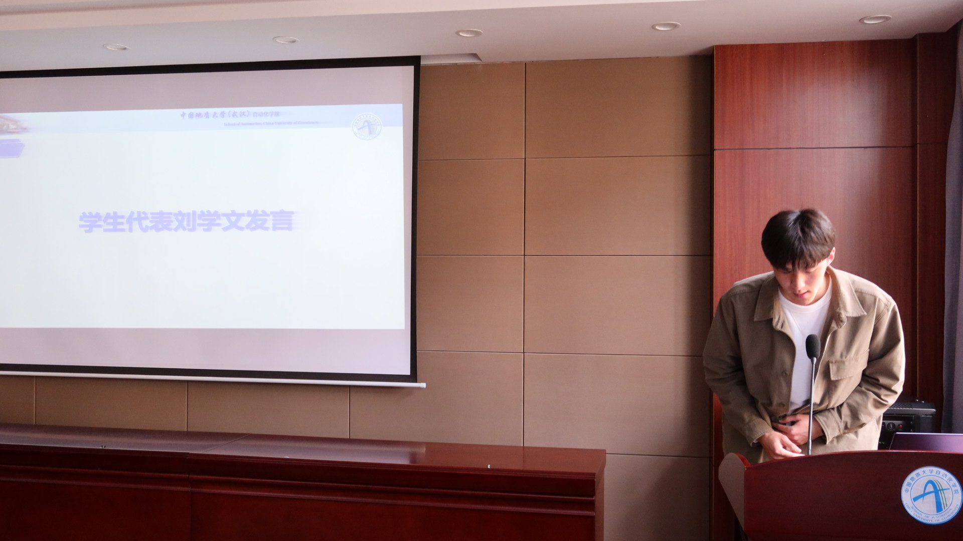 紧接着员工代表2019级本科生刘学文发言。刘学文分享了自己进入大学以来的学习历程和心态变化,为同学们总结出“今日事,今日毕”、积极参加科研活动等学习经验。