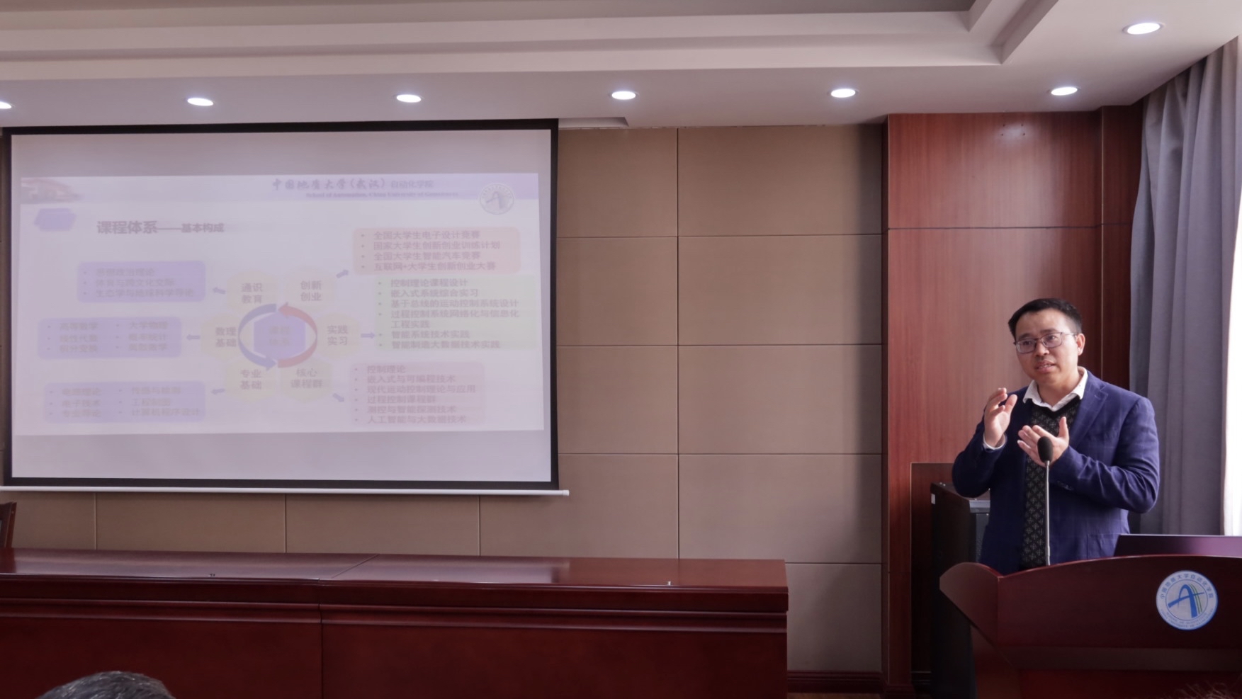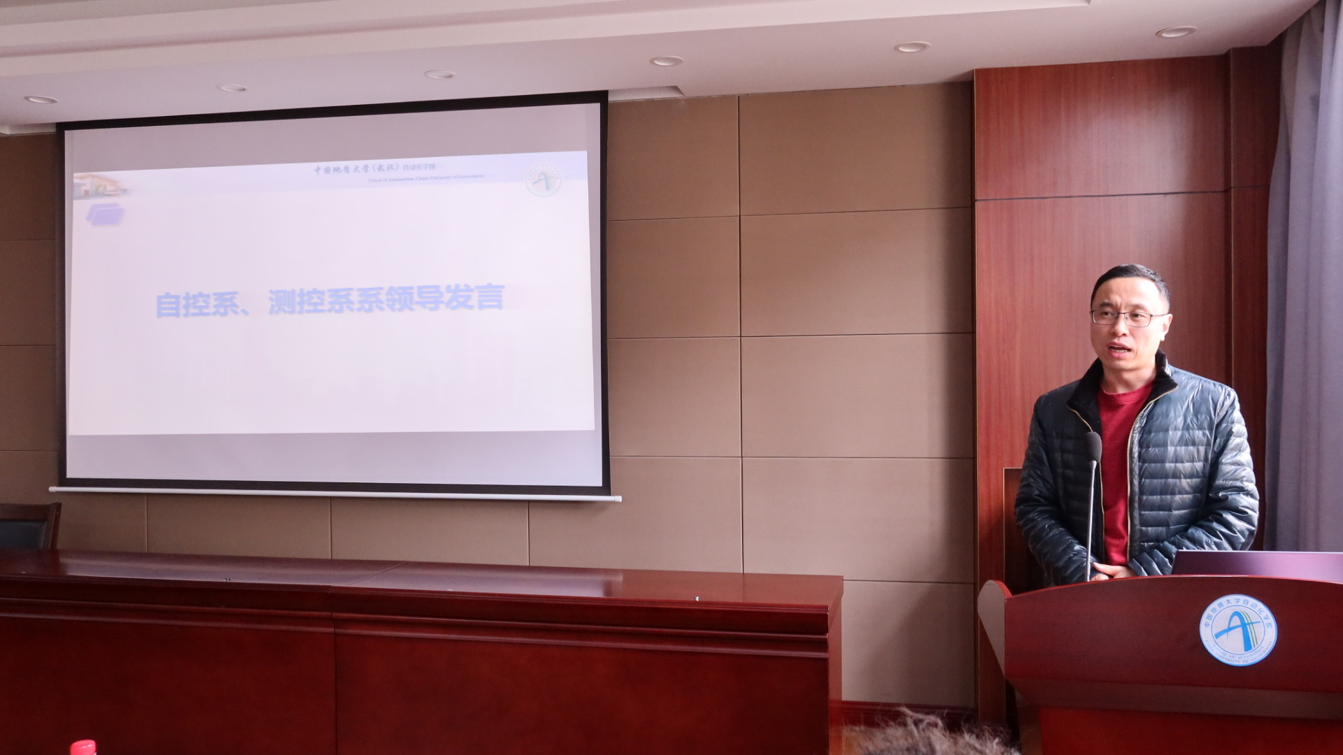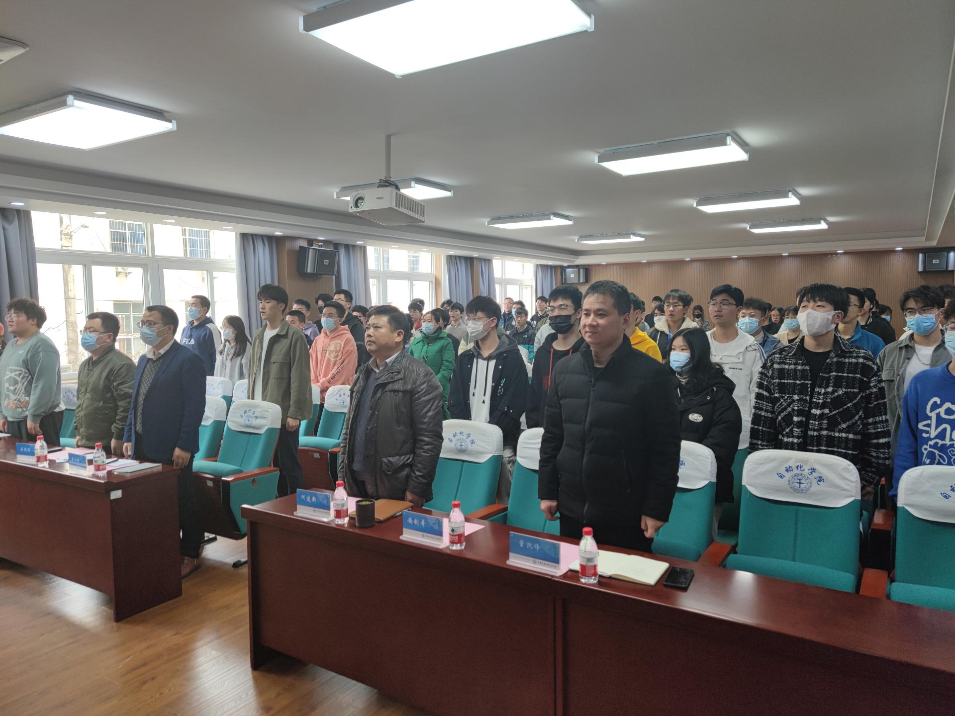 然后自动控制系系主任安剑奇老师与测控技术与仪器系系主任董凯锋老师分别发言。安老师表示,同学们要明确自己的人生方向,在大学学习生活中相信自己,迎难而上。董老师指出,同学们要“走出宿舍,走进教室”,端正学习态度,保证学习时间,同时根据自己的实际情况提早作出发展规划。
