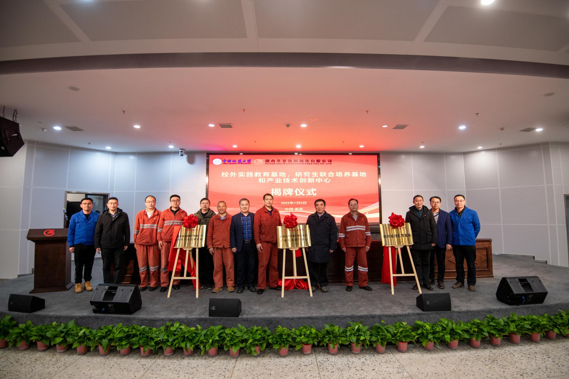 2022年1月5日,公司与湖南华菱涟源钢铁有限公司(以下简称涟钢)共同建设的365英国上市“校外实践教育基地”“研究生联合培养基地”和“产业技术创新中心”三个基地揭牌仪式,在湖南娄底涟钢举行。涟钢副总经理邓必荣,副总工程师、企划部部长黄兆军等负责人,公司副董事长赖旭龙,未来技术公司经理吴敏、365英国上市经理曹卫华等负责人,以及正在涟钢生产实习的师生共同参加了揭牌仪式。曹卫华主持揭牌仪式。