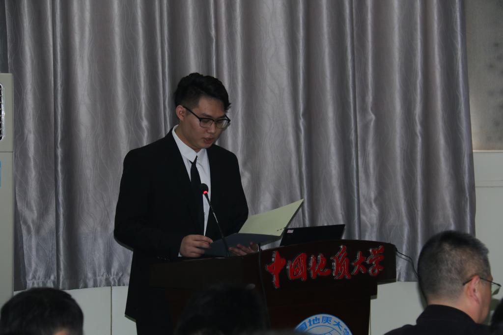 研究生代表2019级硕士生王宽林代表研究生发言。他表示公司打造的学术交流平台为研究生提供了丰富的学术交流活动,倡导全体研究生珍惜在读期间难得的学习机遇,积极投身科研,在求知的道路上坚持不懈。