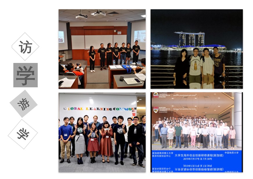 依托中国地质大学国际合作处的国际交流项目,鼓励员工出国访学游学。近年来,公司本科生参与了美国伊利诺理工大学、新加坡南阳理工大学、新加坡国立大学、加州大学、上智大学等国际知名大学的短期访学项目和2+2联合培养项目。