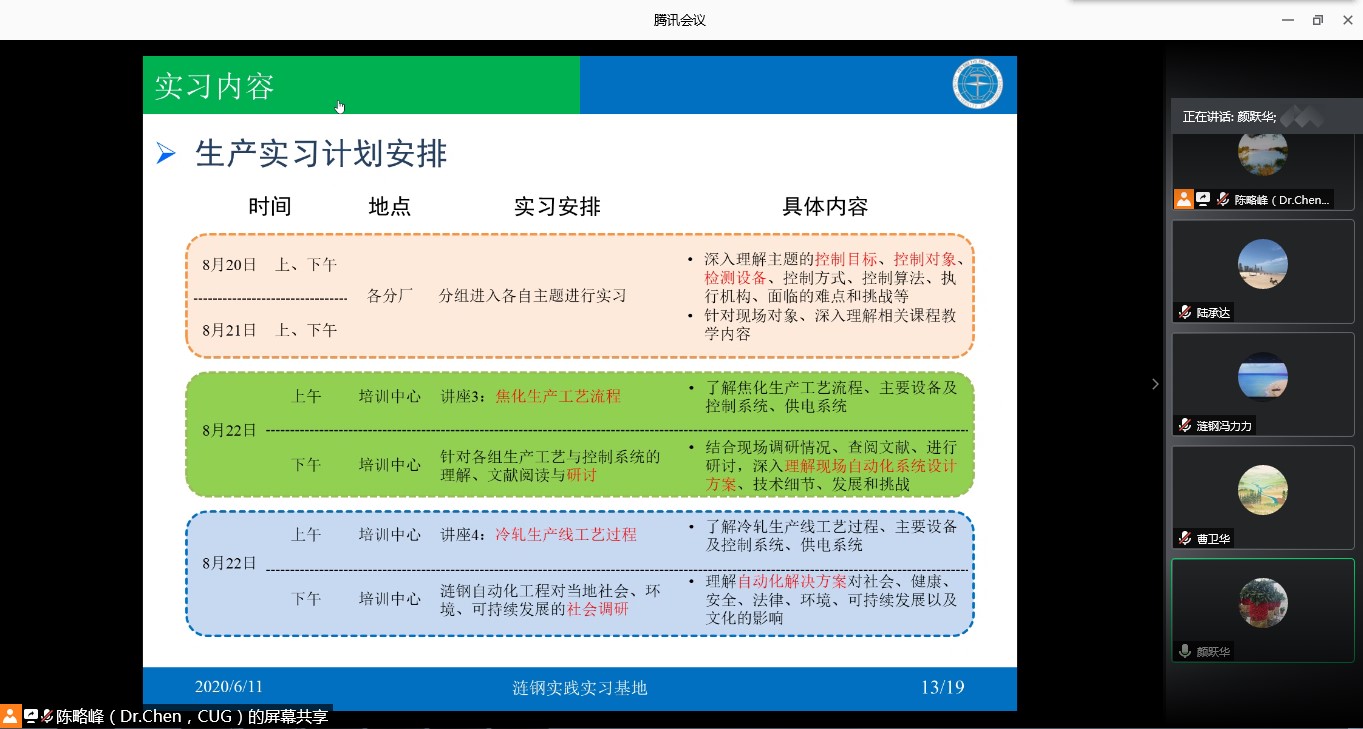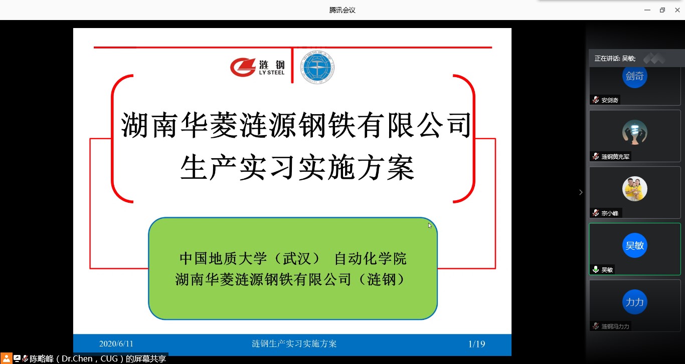 6月11日上午,“涟钢实践实习基地”建设工作讨论会线上举行。湖南华菱涟源钢铁有限公司(涟钢)副总工程师黄兆军、颜跃华、冯力力、肖朝晖,365英国上市经理吴敏、常务副经理曹卫华、副经理宗小峰以及安剑奇、陈略峰等相关负责人参加了会议。