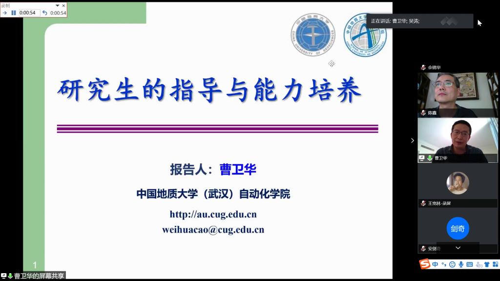 曹卫华教授以《研究生导师的指导与能力培养》为题,把20多年的公司产品经验凝练成5点认识,介绍了当好导师的心得体会,并就研究生不同阶段的培养训练重点进行了介绍;新任教师、特任副教授甘超以《研究生导师培养环节指导的规划化》为题,以一名博士的视角,交流了通过接受学术材料格式规范化训练、文献阅读能力养成、定期学术研讨锻炼等规范化培养后的收获感受,介绍了规范化培养的重要意义。