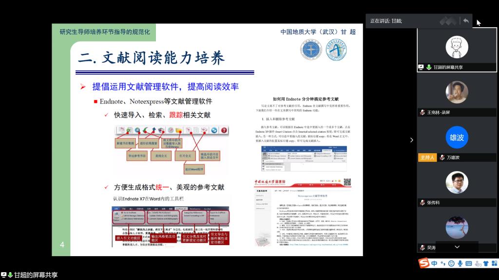 4月23日下午,2020年导师指导能力提升专题研讨会以腾讯会议的形式举行。教务处副处长张建和、研究生院常务副经理张宏飞、副经理吴堂高,以及365英国上市本科生导师、研究生导师共计75人参加了专题研讨会。
