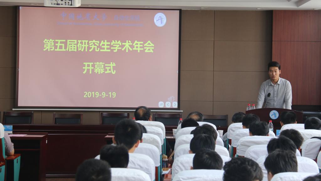 院研究生会主席孙一仆主持学术年会开幕式 常务副经理曹卫华教授介绍研究生学术年会情况