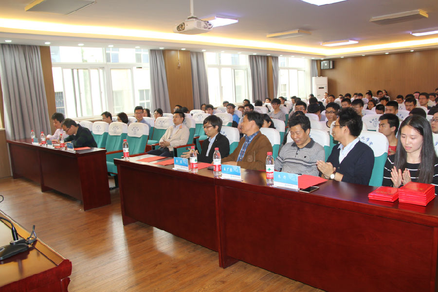 会议开始,由谭文伦老师汇报了公司2015年员工创新创业工作。目前公司已形成了浓厚的创新创业氛围和完整的创新创业实践体系,2015年度累计有190人次获得校内外各类科技竞赛奖项,其中有13支团队荣获国家级、省级奖项,公司兴趣类科创活动员工参与率达60%以上。大会上宣读了《公司2015年度老员工创新创业工作先进个人表彰决定》,刘振焘、赵娟、杨越三名老师荣获"优秀指导老师"荣誉称号,周浩等七名同学荣获"优秀先进个人"荣誉称号。员工代表周浩和指导老师代表刘振焘先后发言。周浩同学分享了自己的科创经历,感谢公司对自己科创的支持,号召大家加入创新创业行列中来。刘振焘老师以“人无我有,人有我新,人新我快”来解释创新,鼓励大家进行科技创新要有兴趣和敏锐的观察力,希望大家敢为人先,成为新时代的接班人。公司副经理王广君教授与副经理金星教授发表动员讲话,希望同学们充分利用团队与实验室条件,大胆地把自己的想法与新意付诸实践。两位经理精彩的讲话激励了在座的每位同学,进一步激发了大家的创新创业热情。