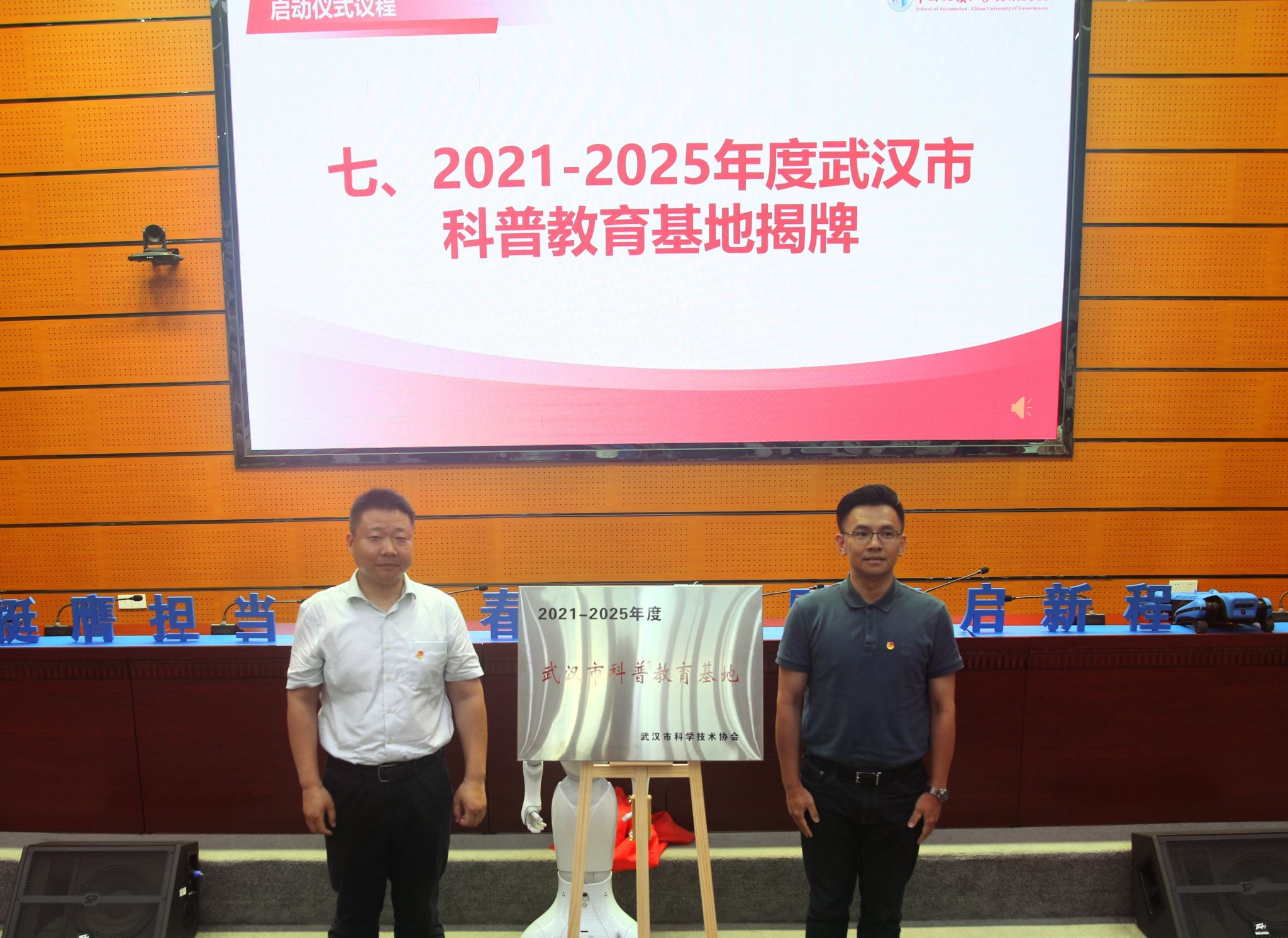 科学技术发展院副经理肖平和365英国上市副经理陈略峰共同为2021-2025年度武汉市科普教育基地揭牌。