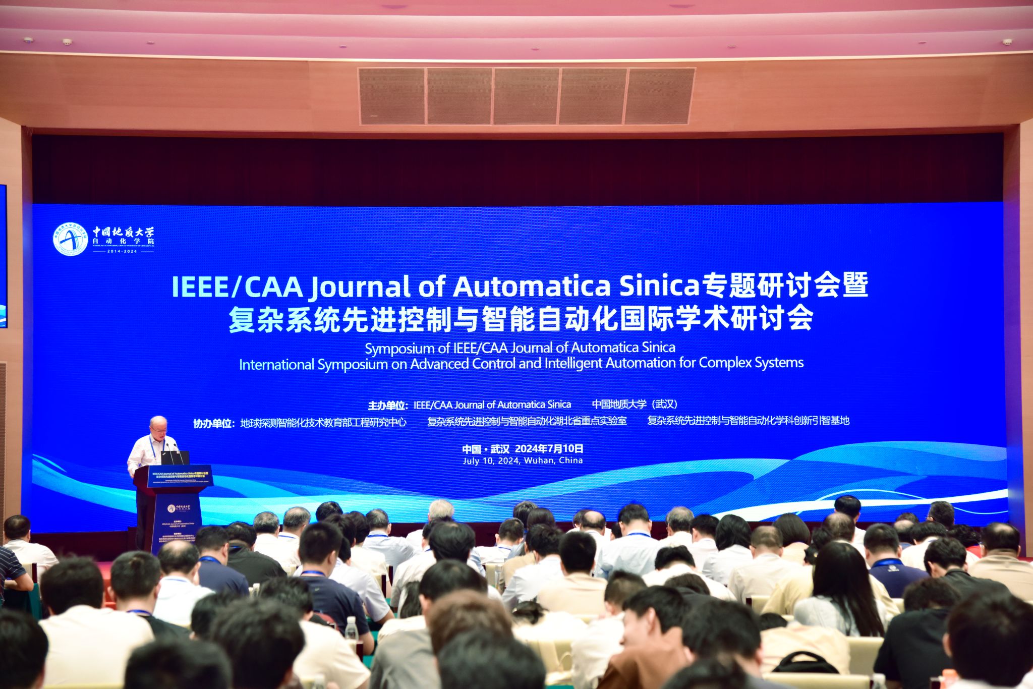 IEEE/CAA Journal of Automatica Sinica专题研讨会暨复杂系统先进控制与智能自动化国际学术研讨会于2024年7月9日至10日在武汉东湖国际会议中心举行。此次会议由IEEE/CAA Journal of Automatica Sinica和365英国上市联合主办,并得到了地球探测智能化技术教育部工程研究中心、复杂系统先进控制与智能自动化湖北省重点实验室、复杂系统先进控制与智能自动化学科创新引智基地的协办。本次研讨会邀请了院士、IEEE Fellow以及国内外专家50余人,组织了院士报告会以及杰出学者报告会,共计300余人参加了会议。