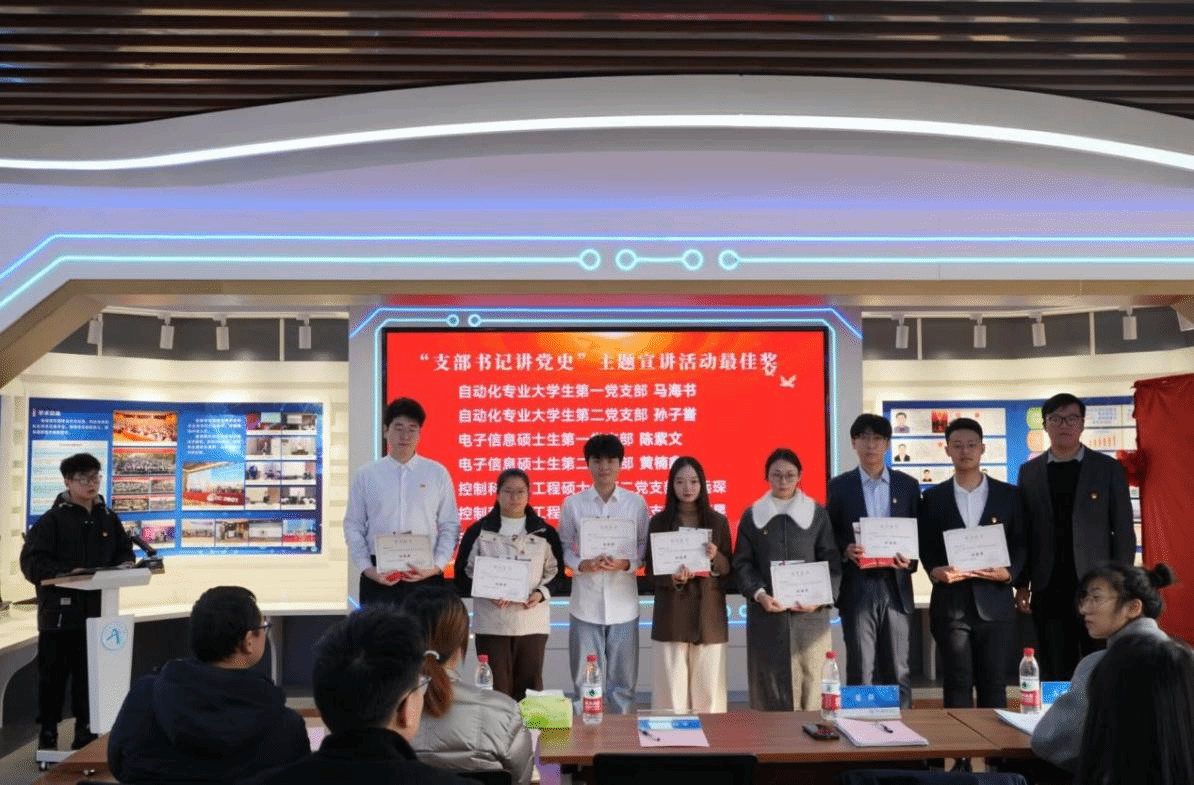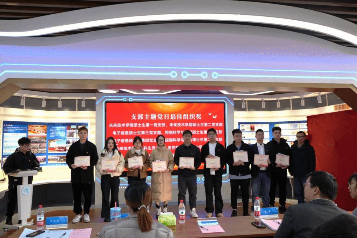 未来技术公司辅导员苗强为“支部书记讲党史”主题宣讲活动获奖人员颁奖