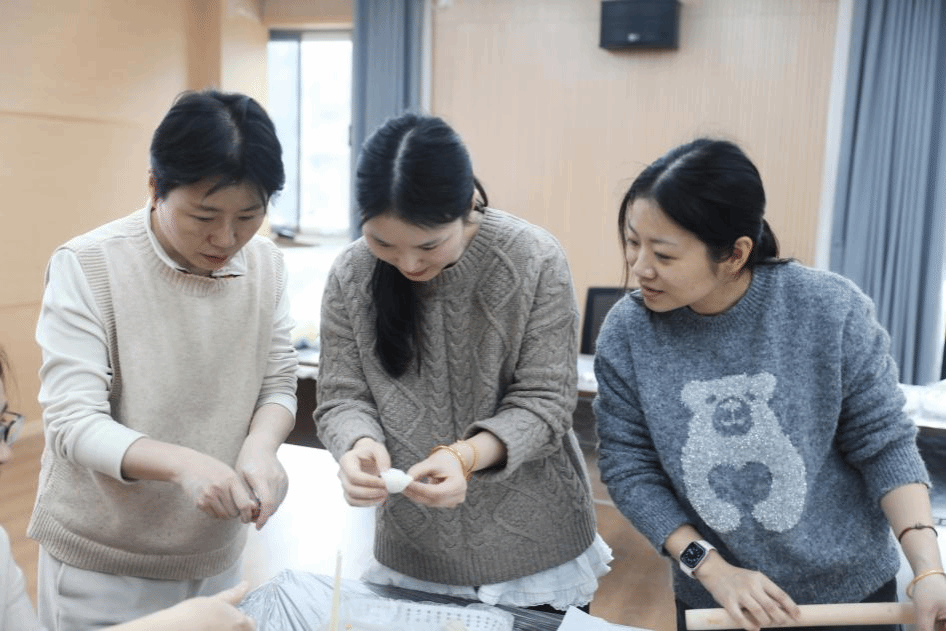 下午三点,活动开始,女教职工们纷纷拿出了看家本领,和面、擀皮、包馅,动作娴熟,配合默契。一双双拿惯粉笔、敲惯键盘的巧手,展现了另一面的才能。当一盘盘形态各异、饱满诱人的饺子就摆在眼前时,大家突然感受到了生活的另一种美好!此时,教学和科研的紧张早已被轻松惬意的感觉代替,大家有的交流各种包饺子技巧,有的聊起了家常。随着小员工放学,一些孩子也加入了进来,现场愈发热闹。欢声笑语交织,整个院区充满了“家”一般的温暖与欢乐。