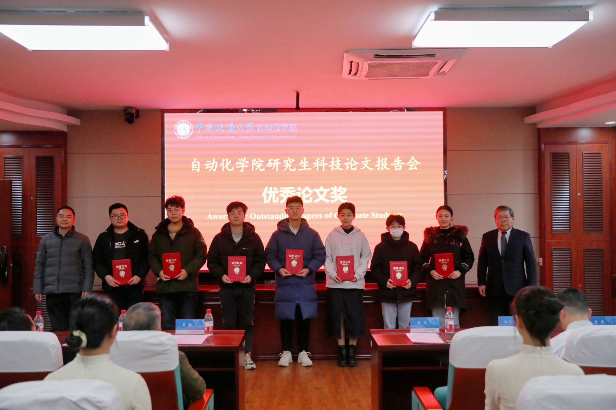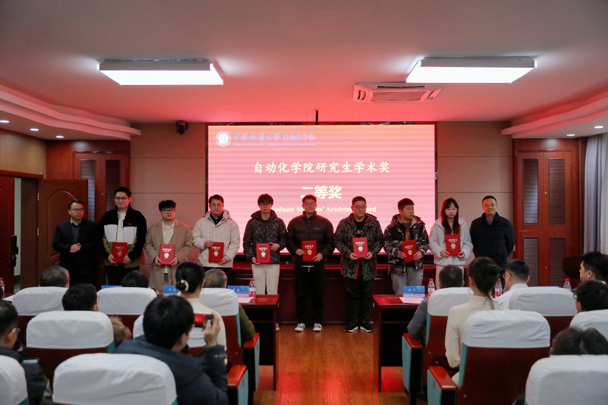 随后,副经理熊永华教授宣读了《关于表彰第九届研究生科技论文报告会优秀论文奖的决定》和《关于表彰2023年研究生学术奖的决定》。与会领导、嘉宾先后上台为获奖研究生代表进行颁奖。