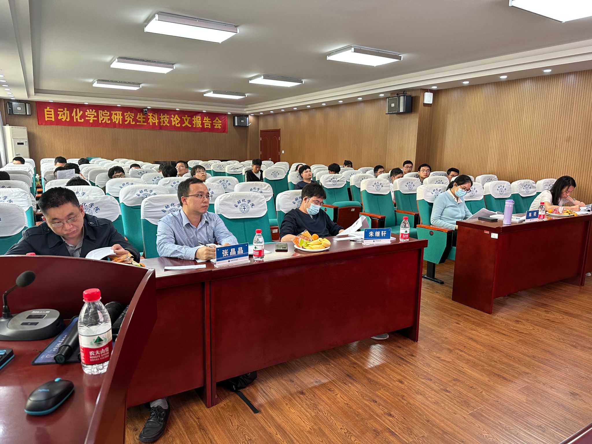 根据公司产品层次及汇报方式,设置硕博英文汇报场2场,硕士生中文汇报场5场,邀请自动控制系、测控技术与仪器系、智能系统研究所的30名老师担任评委参与指导和评审工作。研究生科技论文报告会现场采取“5+3”的答辩模式,汇报过程中,各位同学精神饱满,思路清晰,全面、详实地阐述了选题的国内外研究现状、选题背景及意义、研究方法与结论,展现了大家对于科研一丝不苟的态度。评委老师针对每位同学的研究提出详细的指导意见,并根据论文选题、报告内容、创新性及研究成果应用价值、现场表现进行综合评分。汇报结束后,各会场评审组组长进行总结发言,第一会场评审组组长陈略峰教授高度表扬了同学们的研究态度,同时希望同学们始终保持学术热情,用严谨的治学态度和扎实的理论基础开展后续研究,争取在创新性方面更上一个台阶。