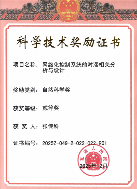 1月4日上午,湖北省科技创新大会召开,公布了《湖北省人民政府关于2025年度湖北省科学技术奖励的决定》。公司张传科教授团队“网络化控制系统的时滞相关分析与设计”项目荣获湖北省自然科学奖二等奖。向张传科教授团队表示祝贺!(通讯员:张静)