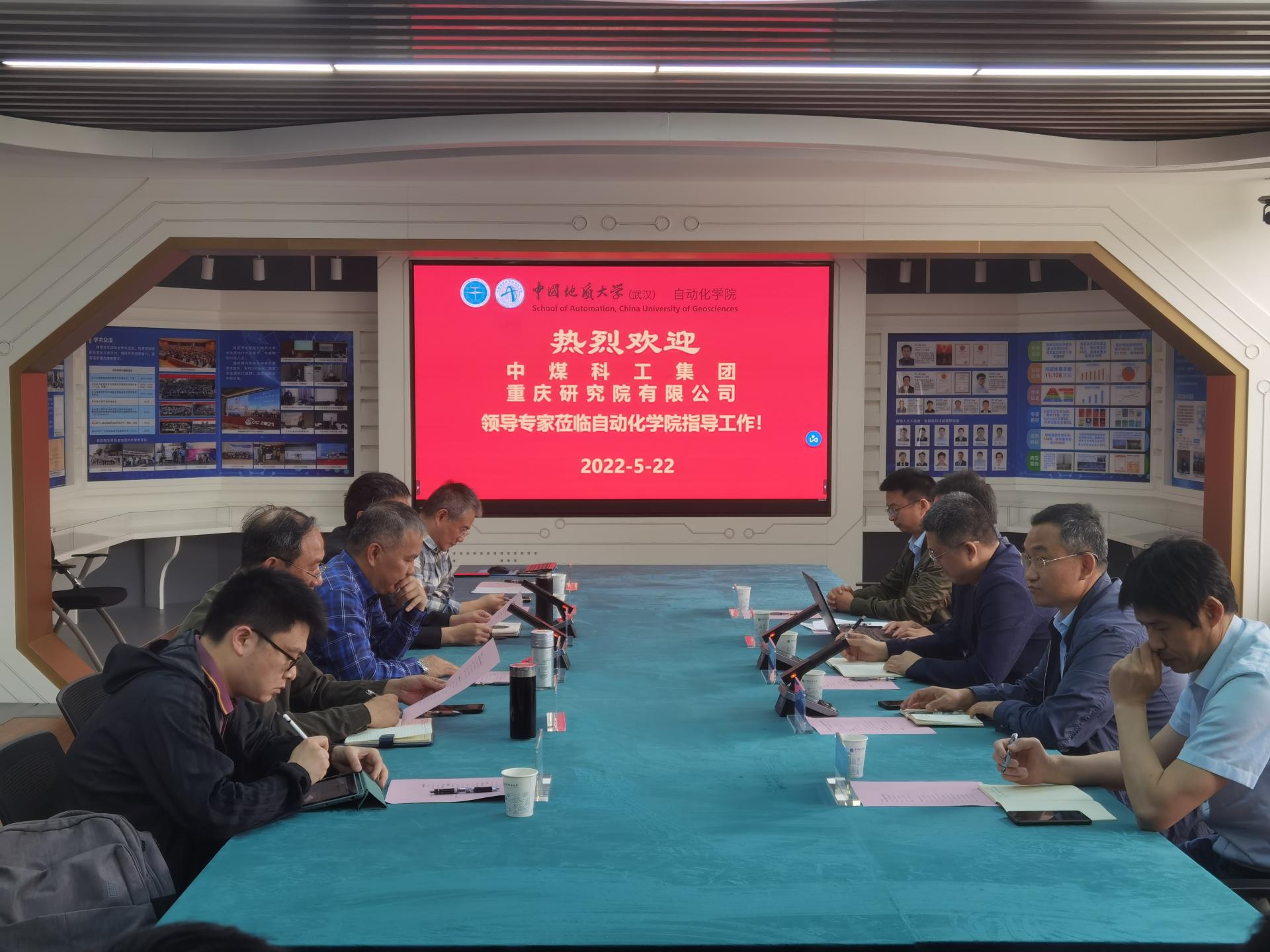 吴敏教授致欢迎辞。他对张志刚一行来访表示热烈欢迎,期待建立长效合作机制,加强交流与联系,共同开展地质装备智能化技术的合作研究。张志刚副总经理表示,中煤科工集团重庆研究院在钻探、地探研究、人才引进等方面与中国地质大学有很好的合作基础,希望进一步加强合作,促进研究成果转化应用。