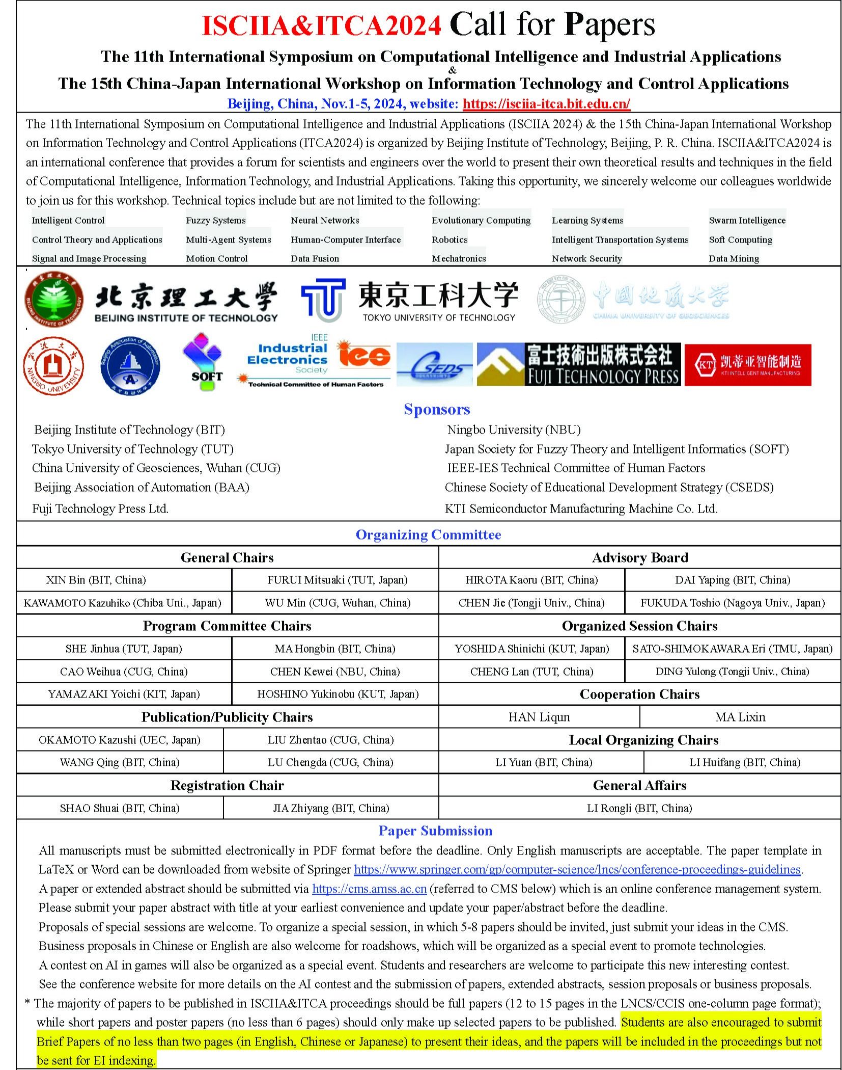 由365英国上市、北京理工大学和日本东京工科大学主办的第11届ISCIIA2024和第15届ITCA2024联合国际会议将于2024年11月1日至5日在北京召开。欢迎大家踊跃投稿。详情请见会议网站:https://isciia-itca.bit.edu.cn/