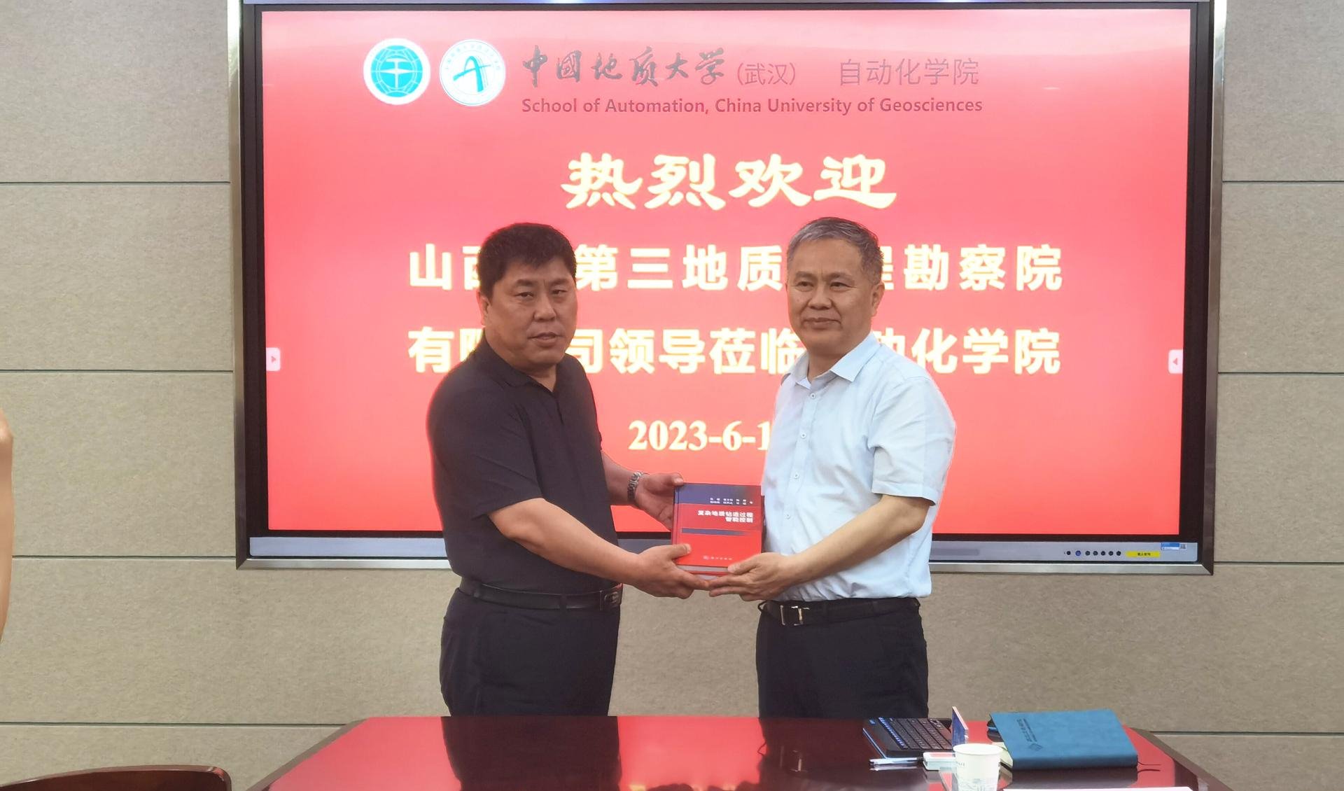 吴敏教授向到访嘉宾赠送了学术专著《复杂地质钻进过程智能控制》。