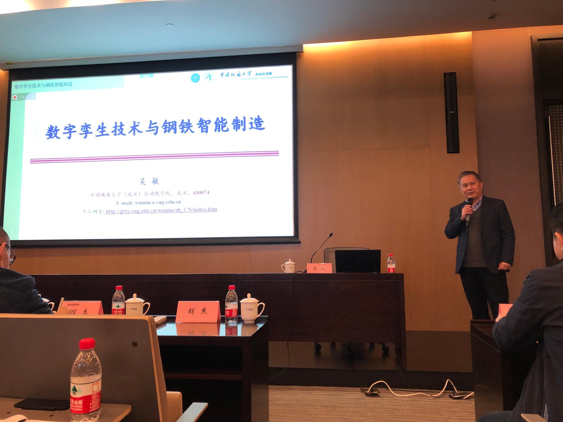 吴敏教授应邀做了题为《数字孪生技术与钢铁智能制造》的学术报告,从钢铁智能制造现状与挑战、数字孪生技术及其应用、数字孪生与钢铁智能制造新思考三个方面进行详细介绍。与会的中冶南方领导和工程师给予高度好评,并围绕钢铁领域智能化与数字孪生技术的未来和挑战进行了热烈交流与讨论。