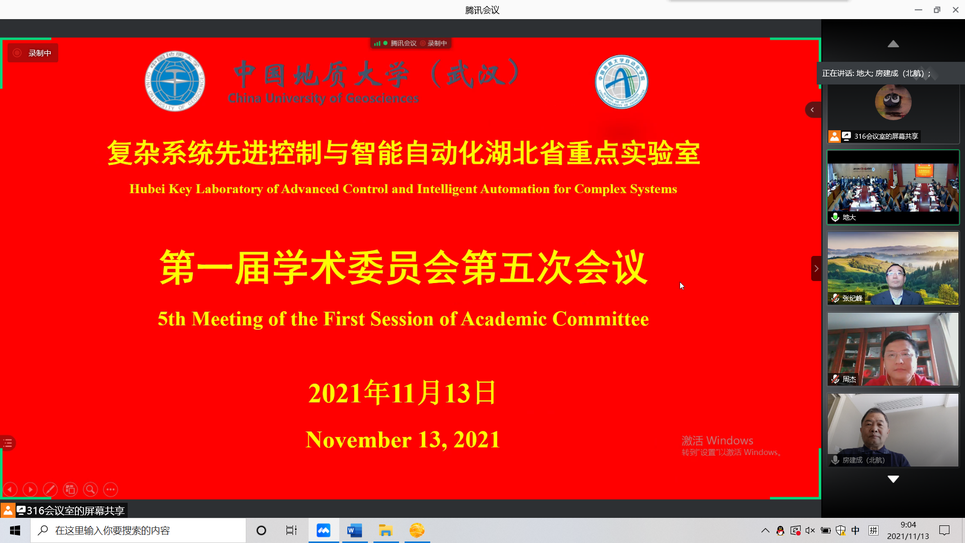 11月13日,复杂系统先进控制与智能自动化湖北省重点实验室(以下简称重点实验室)第一届学术委员会第五次会议在公司召开。重点实验室学术委员会全体成员,湖北省科技厅基础研究处王锦举处长、校科学技术发展院单华生副经理、公司领导及实验室全体成员、实验室开放基金项目负责人和团队成员参加会议。会议通过线上线下结合的方式召开,大连理工大学王伟教授主持会议。