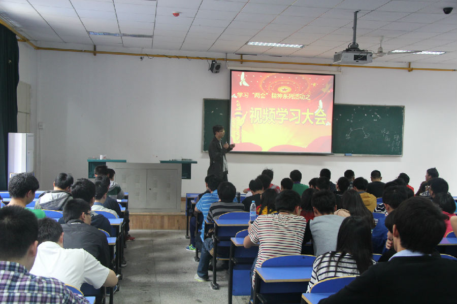 首先,谭老师就学习“两会”的背景、意义和重要性进行了简单的介绍。尔后,通过播放李克强总理答记者问的视频对大家进行了视频教育。视频教育中,学员们聆听了总理对单独“二孩”政策、反法西斯70周年大阅兵和中日关系走向、银行不良贷款、中台关系、中国经济发展等问题的精彩回答。