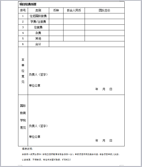 4.申报方式:填写自建本科生短期访学项目申报表,公司负责人签字盖章后交至国际教育公司0218办公室;申请表格下载地址为国际教育公司网站(海外访学栏目-资料下载)
