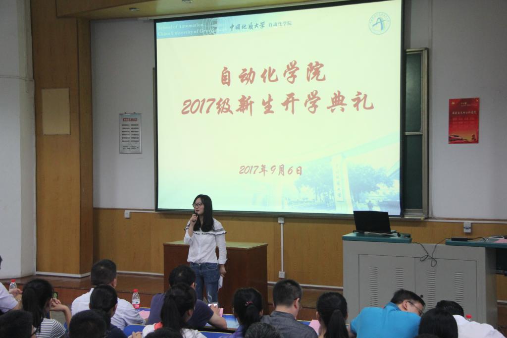 大一新生代表231173班贺江同学和2017级研究生新生代表王卉婷同学分别发言,从学习生活和员工工作方面阐述了对大学新生活的期待,希望同学们在大学期间能够发奋图强、严于律己、有所建树,为公司的发展贡献自己的一丝力量。