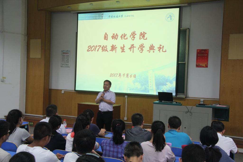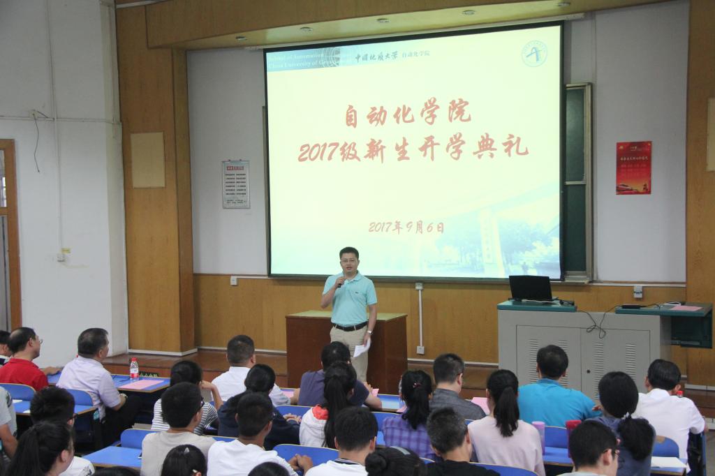 (通讯员 任艺)一年一度秋风劲,八方学子来相聚。9月6日上午,2017级新生开学典礼在教一楼二阶隆重举行。经理吴敏教授,公司党委书记董浩斌教授,副经理曹卫华、金星、王广君、陈鑫教授,自动化系熊永华、刘峰、宗小峰教授,测控系李志华副教授、实验中心副主任刘小波老师以及教师代表等出席典礼。2017级全体本科生、研究生参加了开学典礼。典礼由公司党委副书记何建新主持。
