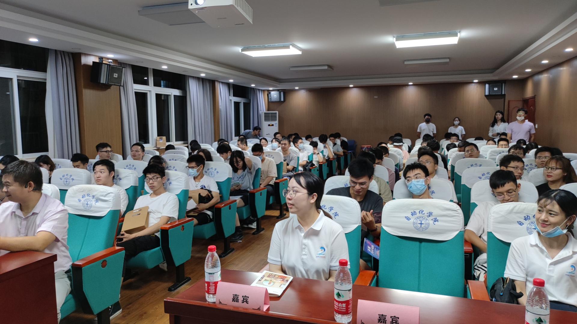 计算存储软件部总经理汪渭春就公司背景、公司文化、公司现状及战略部署等为同学们做了详细介绍,海康威视招聘与配置部总经理李丹就将要招聘的岗位与在会的员工悉心讲解,HRBP部总经理李忠祥为员工讲解了研究所的相关情况。同时也有自动化陈远群学姐向同学们分享了进入海康微视的生活与成长。许多同学对企业产生了浓厚的兴趣,并在现场进行了交流,很多同学对自己想要了解的问题现场提问,李丹经理也一一进行了解答。