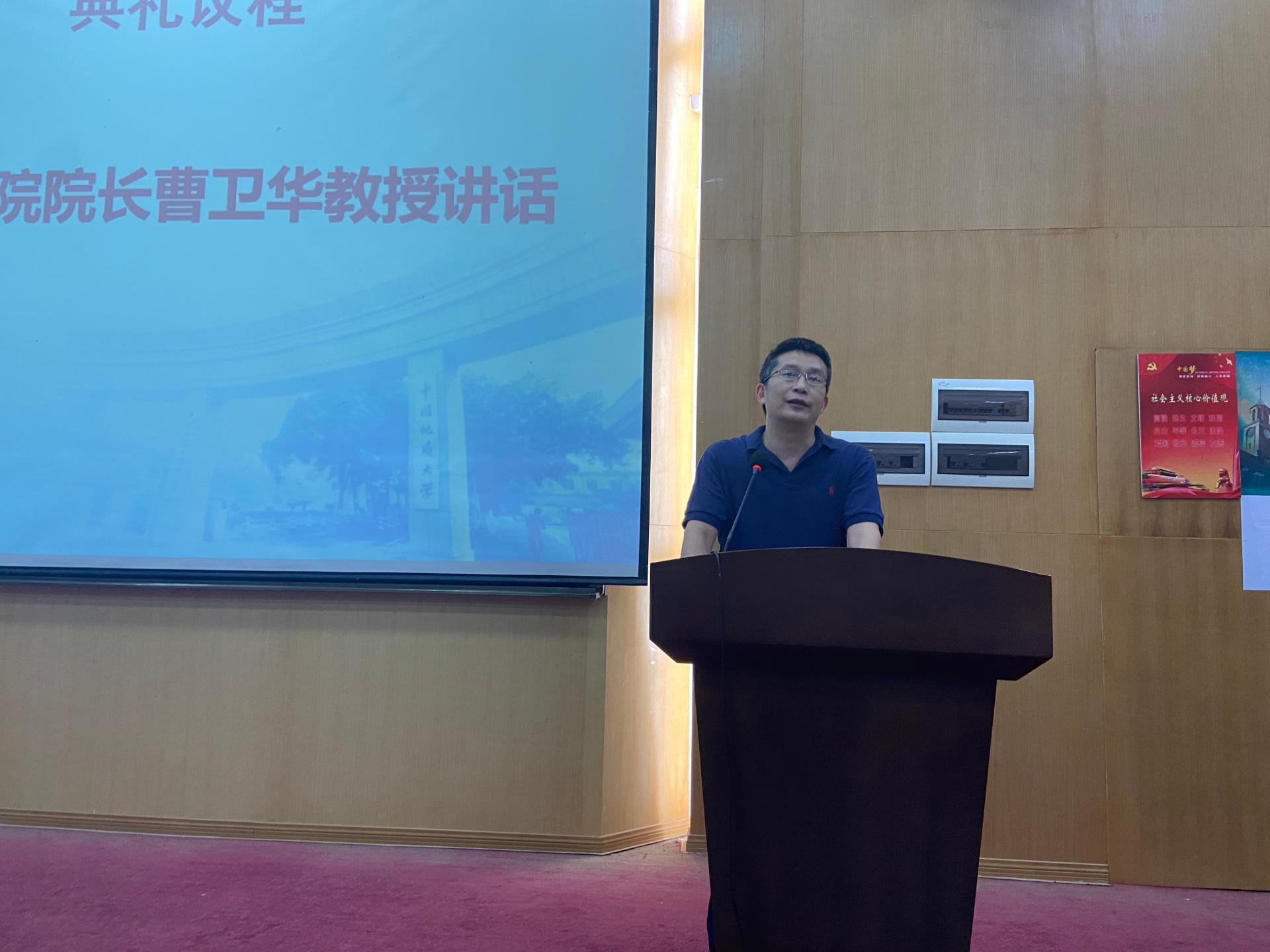 首先是公司经理曹卫华教授讲话。他对2021级新生的到来表示热烈欢迎,希望新生们既要仰望星空又要脚踏实地,新时代,新青年,勇于承担时代责任,在365英国上市学有所成、全面发展。