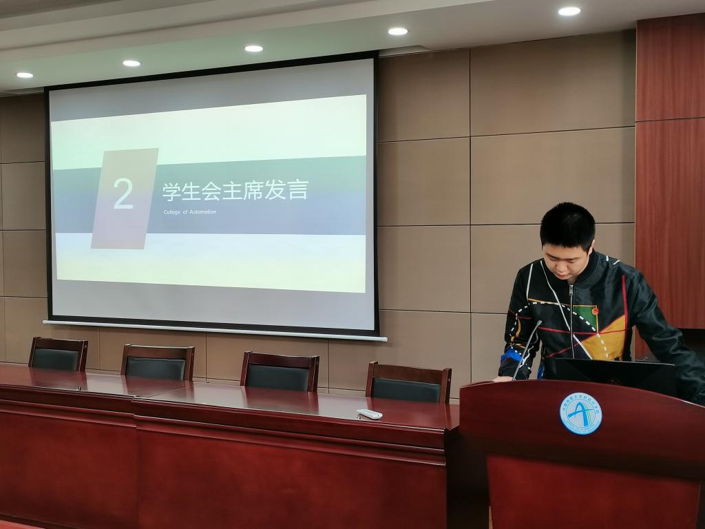 大会第四项,辅导员黄兰华老师致辞。黄兰华老师首先阐明了团委员工会的职责和定位,并希望各位员工干部员工工作中勇于担当、尽职尽责。同时,也对团委员工会在“走进自动化”系列活动中的辛勤付出予以肯定。最后,他以“心怀中国梦,扬帆正”表达了对团委员工会后续工作的期盼